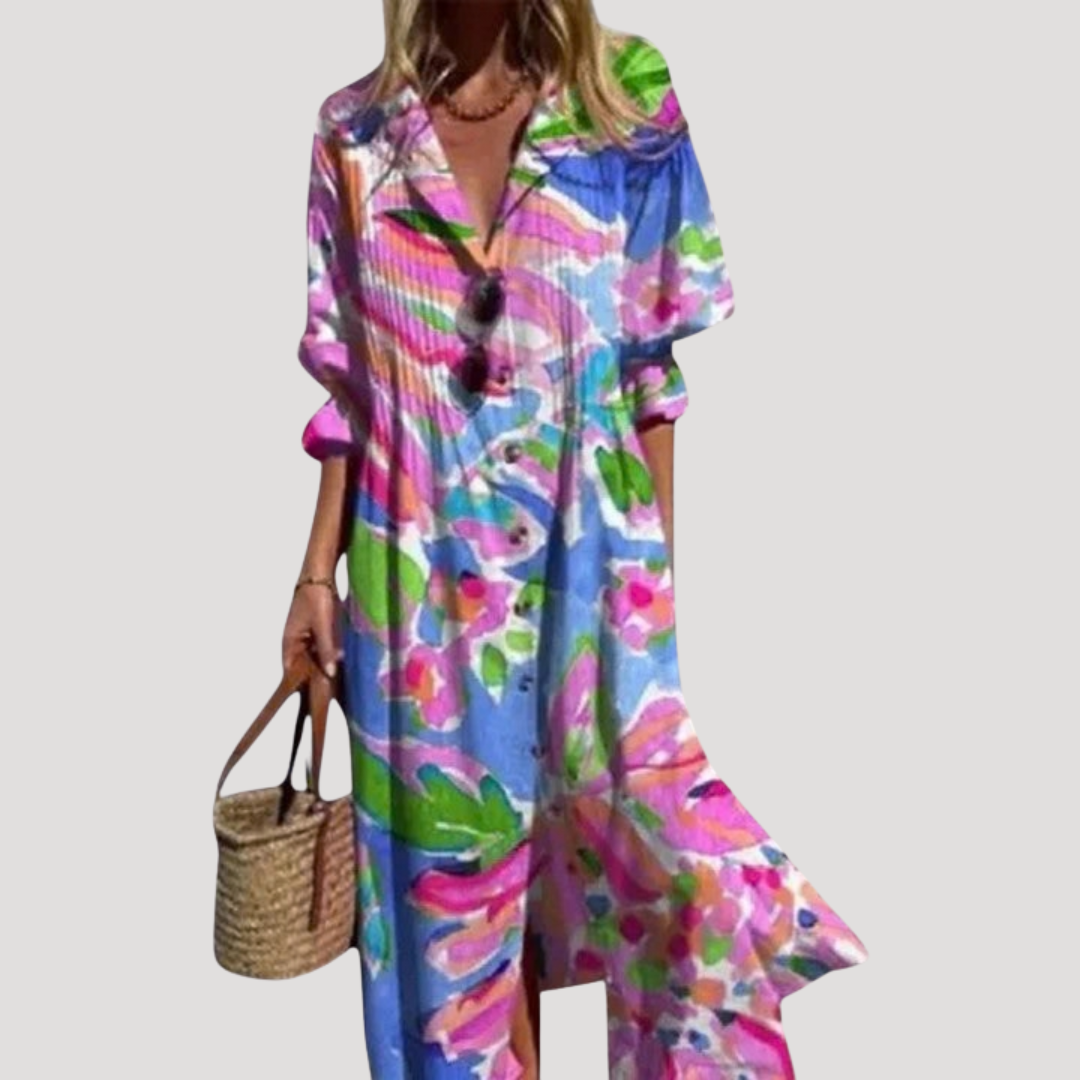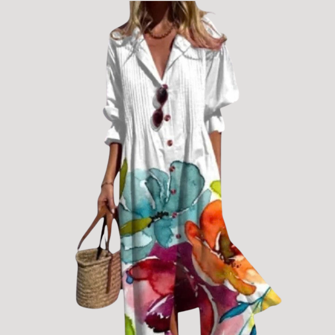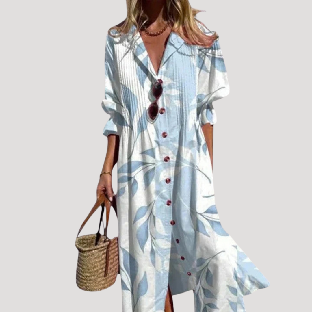 Flattering Printed Maxi Shirt Dress with Button Front