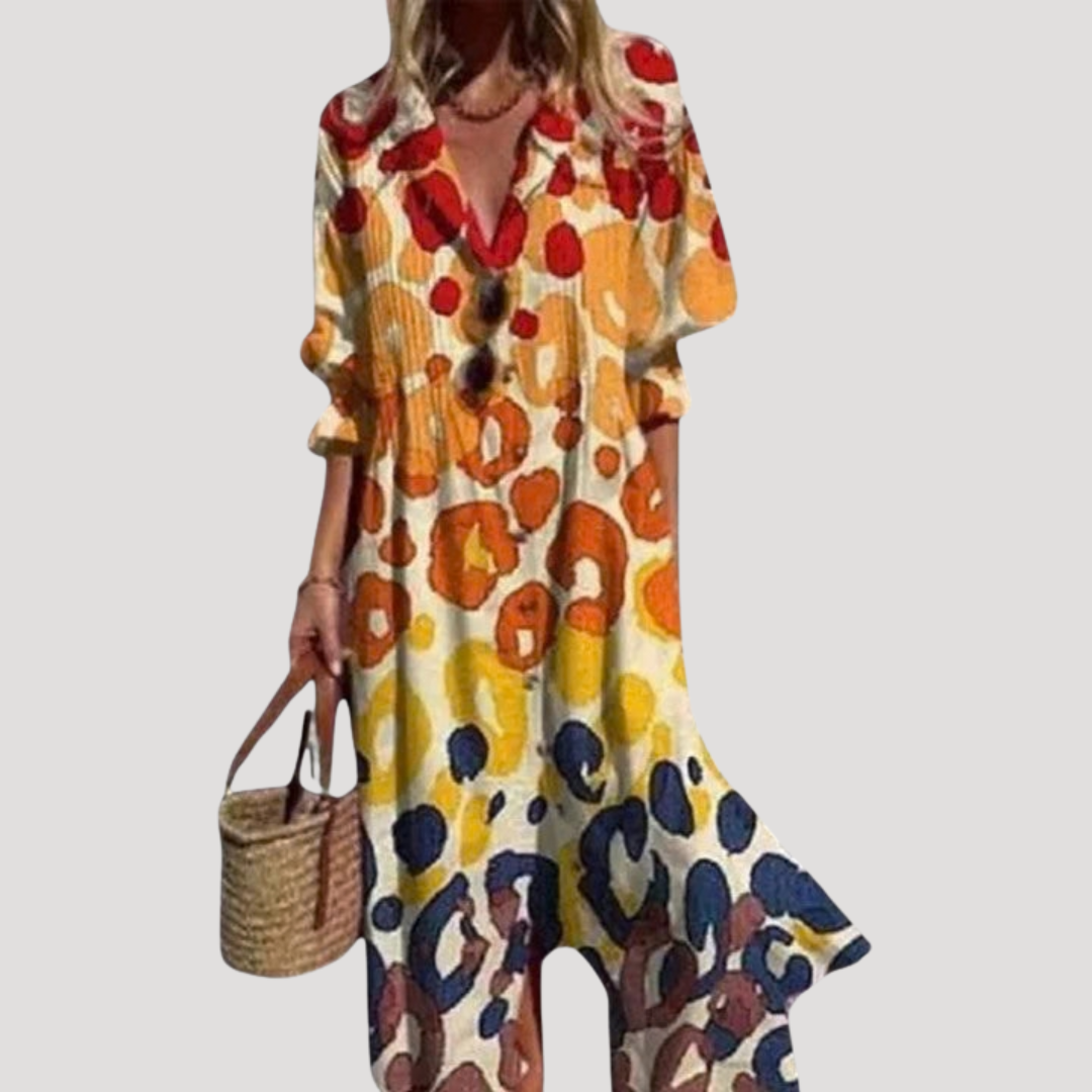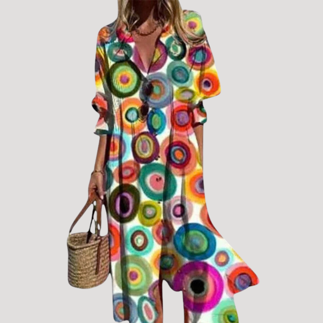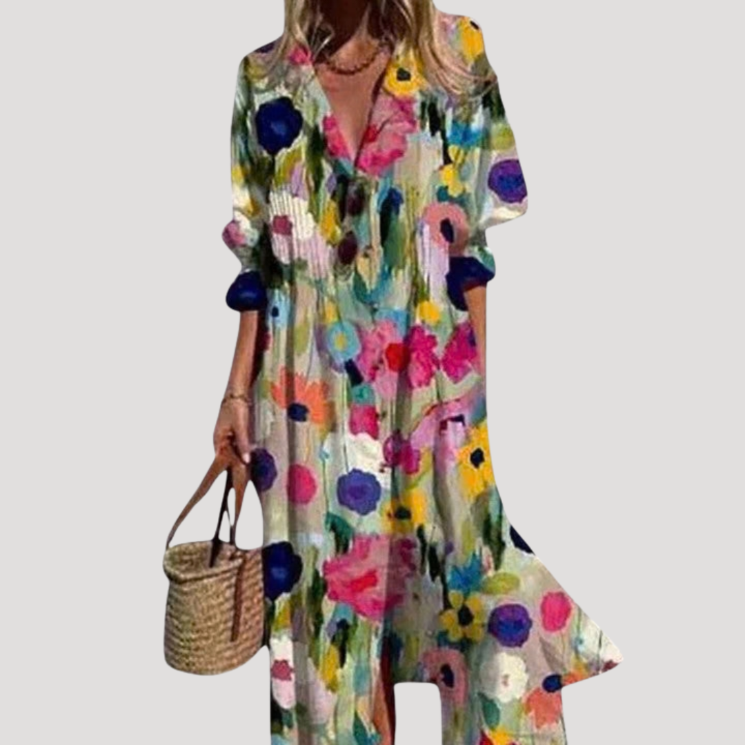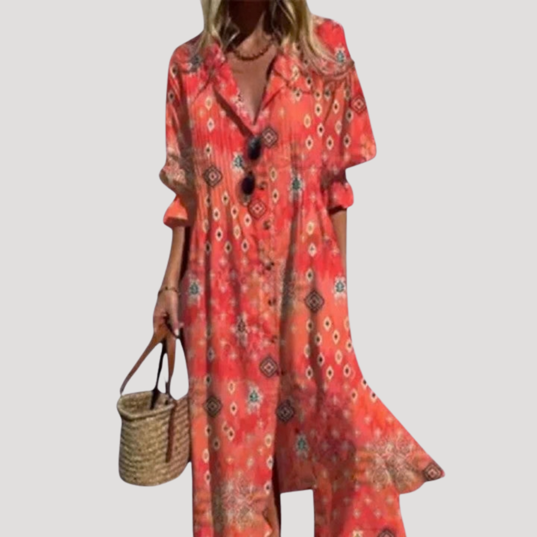 Flattering Printed Maxi Shirt Dress with Button Front