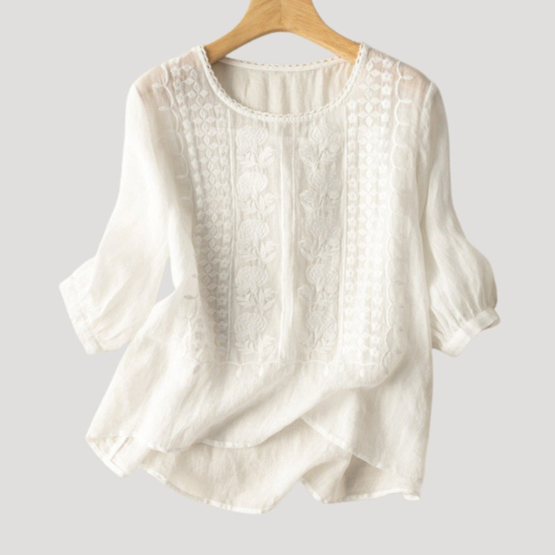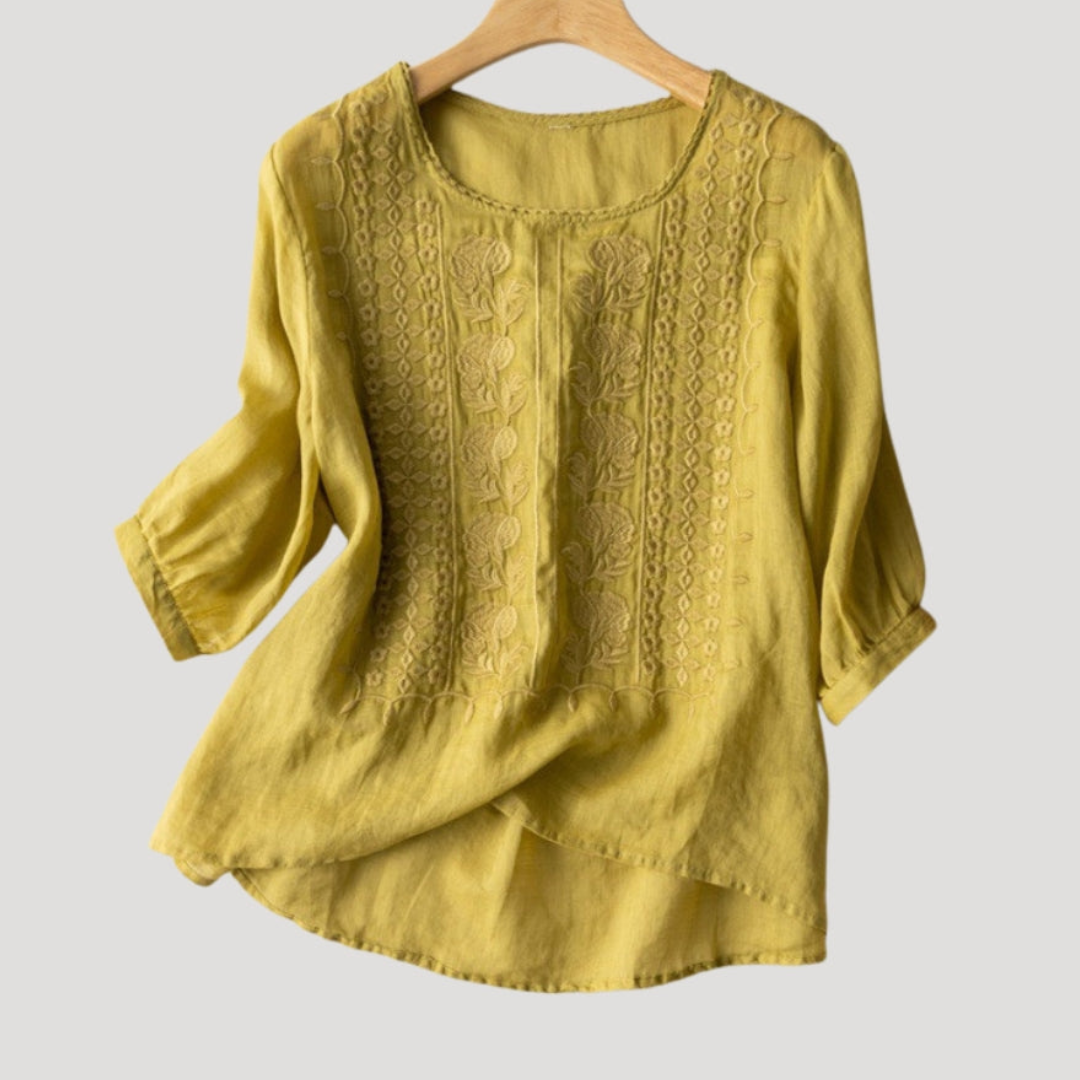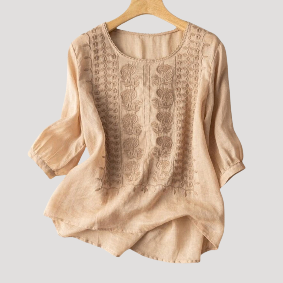 Women's Floral Embroidered Cotton Linen Relaxed Fit Blouse