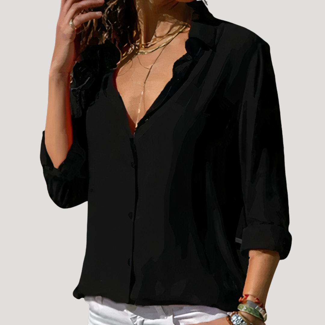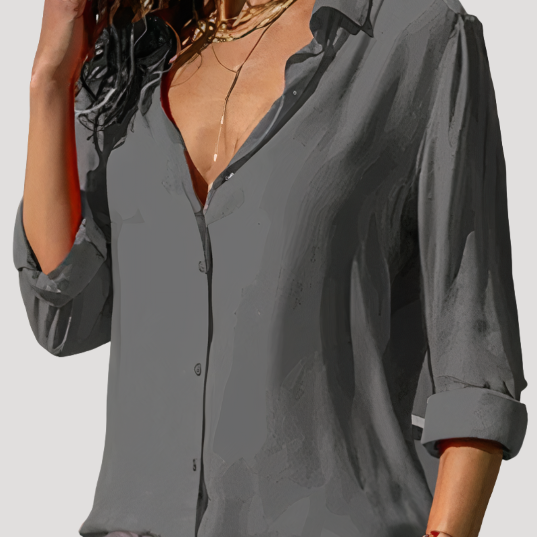 Women’s Elegant Long Sleeve Chiffon Button Blouse