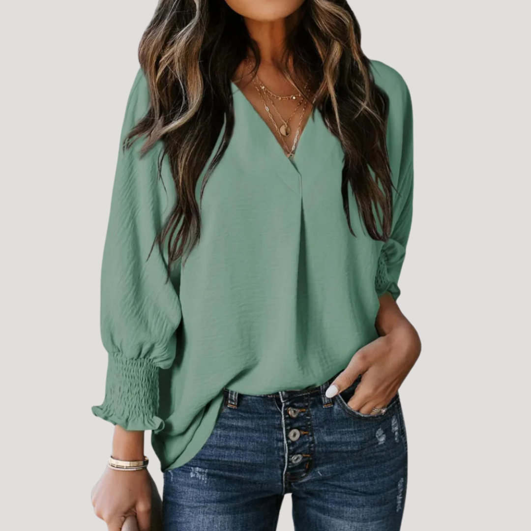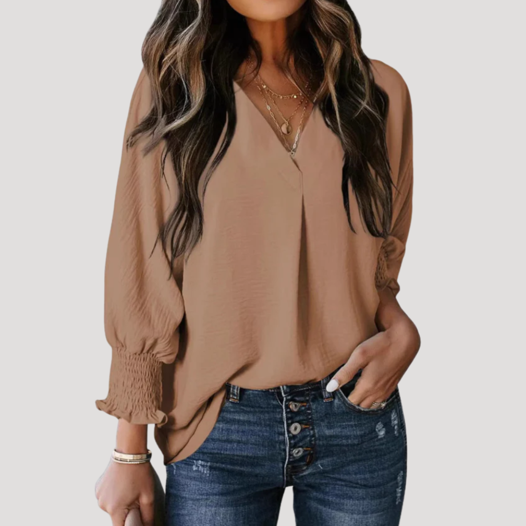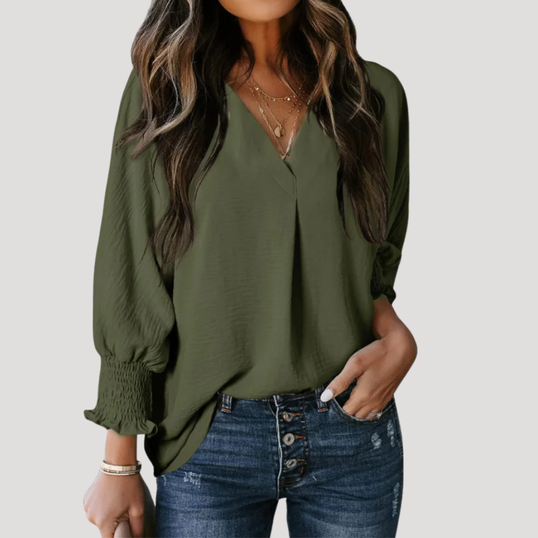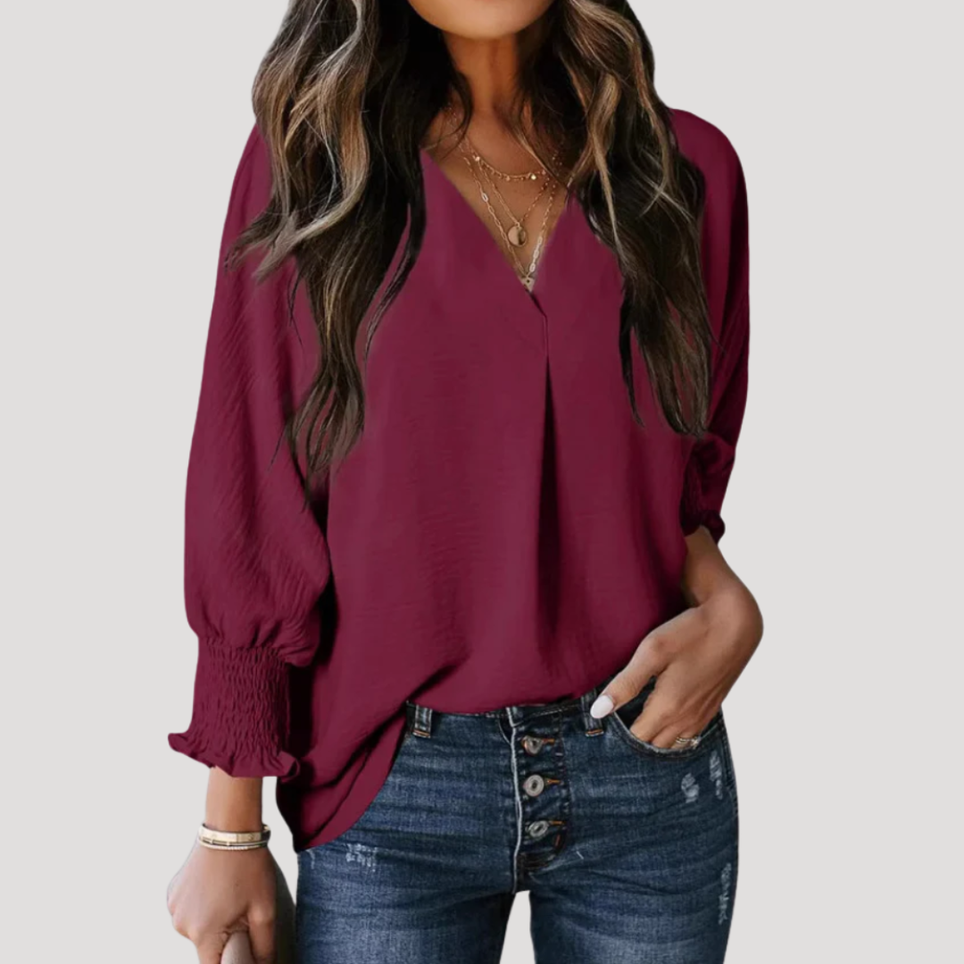 Women’s Flattering V-Neck Long Sleeve Blouse
