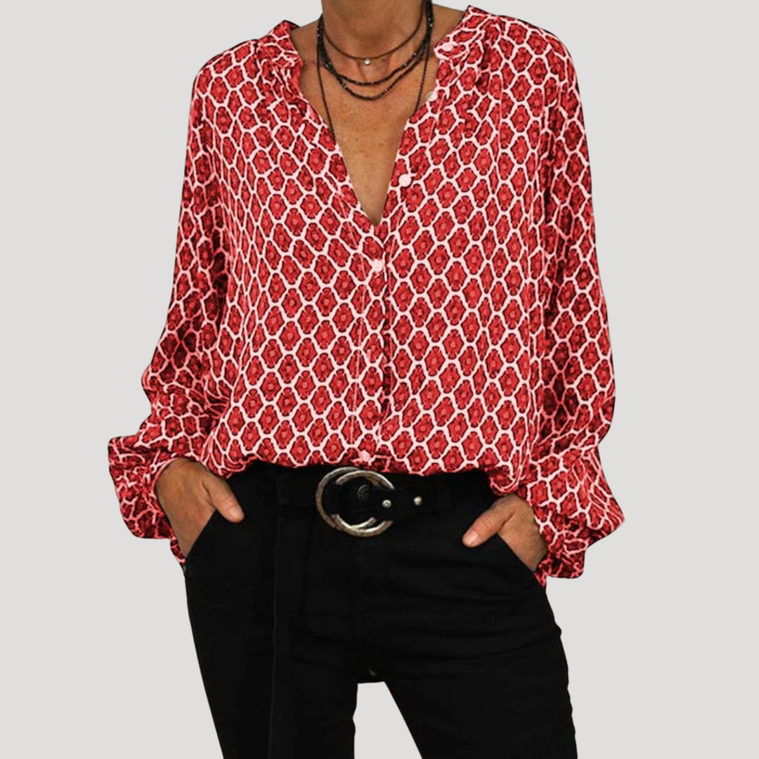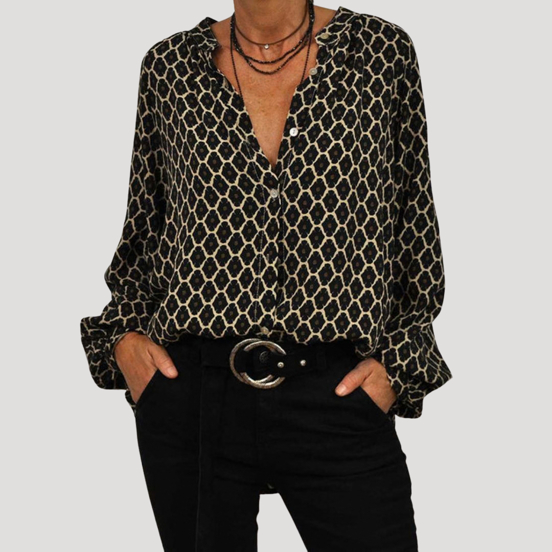 Women's Boho Pattern Button-Front Blouse